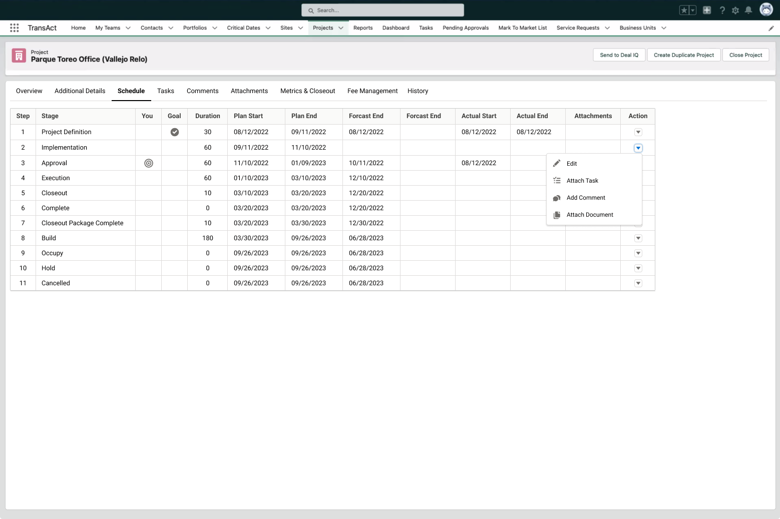 TransAct is a Salesforce application designed to streamline and manage commercial real estate transactions. Hundreds of Fortune 500 businesses and CBRE account managers use TransAct to monitor property management timelines and workflows.